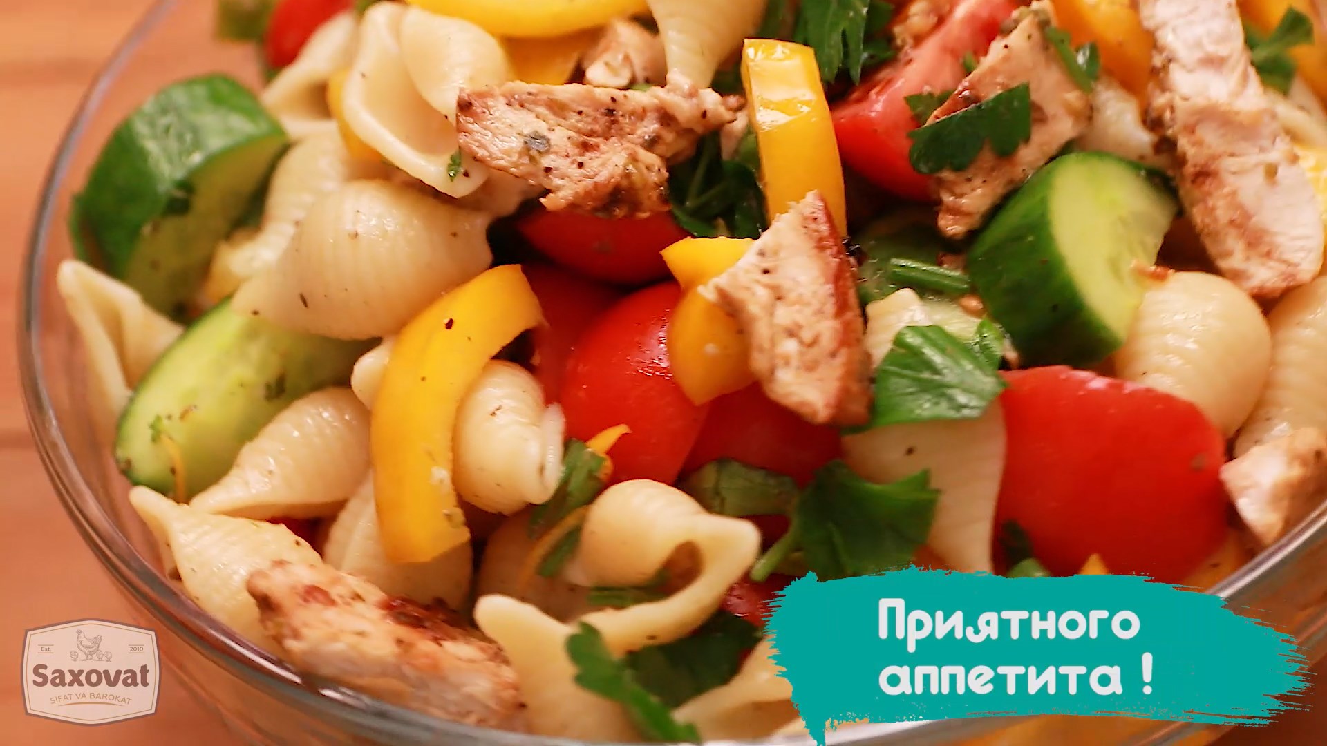 Batafsil "Товуқча ва макаронли илиқ салат"